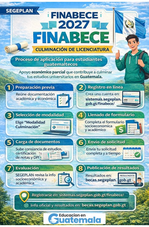 La Beca FINABECE – Culminación de Licenciatura, administrada por SEGEPLAN, está dirigida exclusivamente a estudiantes guatemaltecos que ya se encuentran cursando una carrera universitaria y están en su etapa final, pero que enfrentan dificultades económicas que ponen en riesgo la finalización de sus estudios.