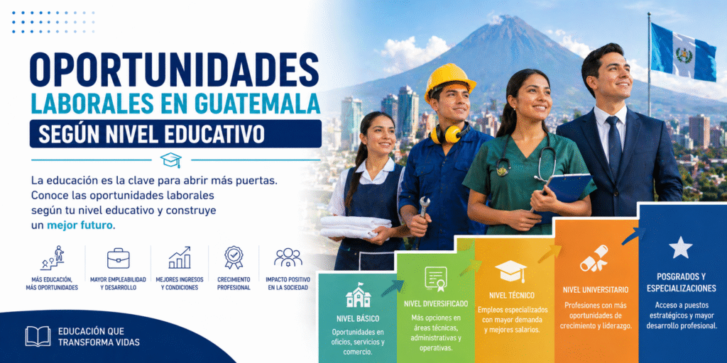 En este artículo analizamos, de forma clara y práctica, qué oportunidades laborales existen en Guatemala según cada nivel educativo, qué sectores están creciendo y qué habilidades marcan la diferencia en 2026.