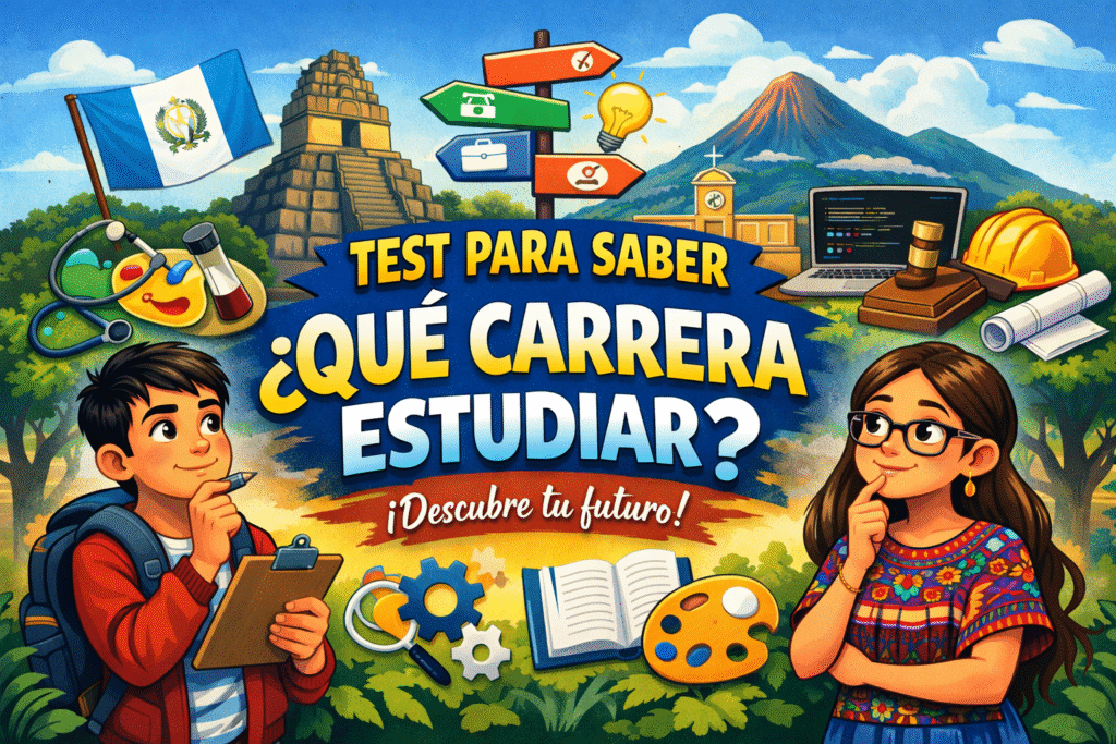 Este test para saber qué carrera estudiar te ayudará a elegir una carrera universitaria es una de las decisiones más importantes para cualquier joven en Guatemala. Muchos estudiantes se preguntan qué carrera estudiar o sienten que no se qué carrera estudiar en Guatemala. No es raro sentirse confundido, sobre todo cuando existen tantas opciones y distintas universidades en el país. La buena noticia es que con orientación adecuada, reflexión sobre tus intereses y herramientas como un test de carrera estudiar, es posible tomar una decisión más clara y segura.