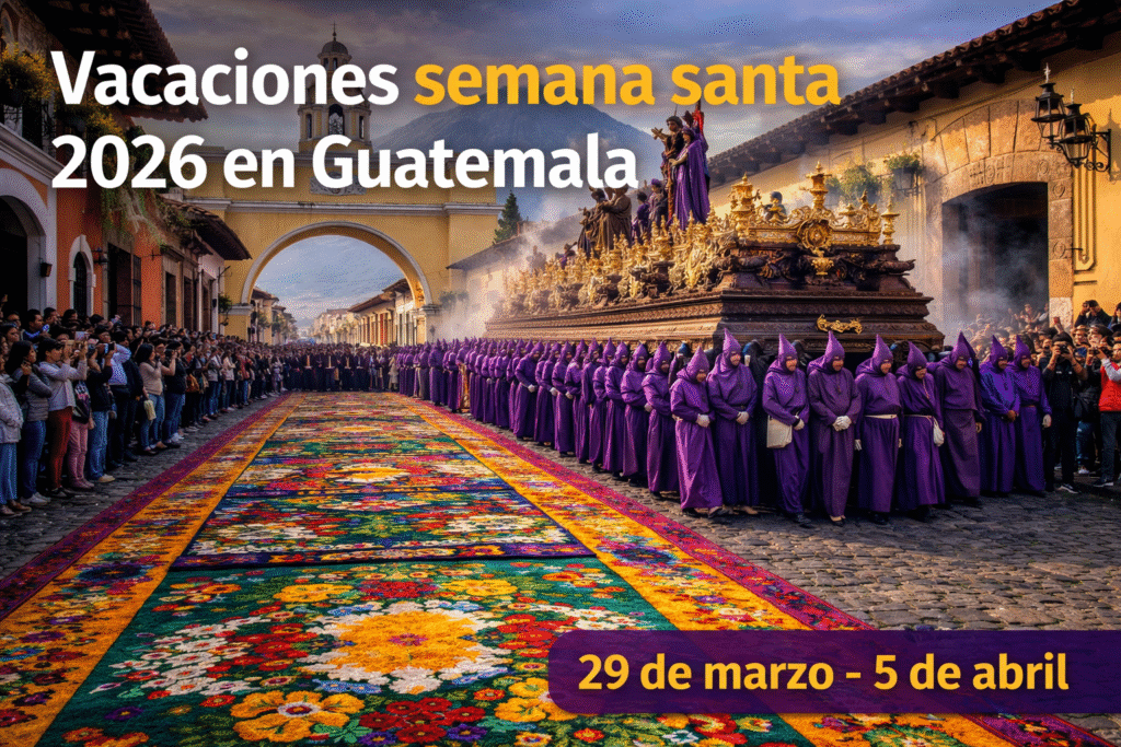 📌 Nota importante: La Semana Santa 2026 en Guatemala se celebrará del 29 de marzo al 5 de abril, siendo el Viernes Santo (3 de abril) el día de mayor actividad procesional y cultural.